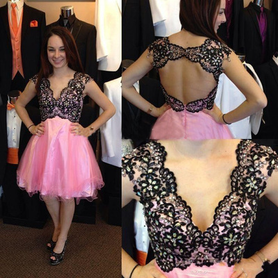 V-Neck Backless Pretty Beading Real Made A-Line Short/Mini Prom Dress,Homecoming Dress,Graduation Dress,Party Dress F68