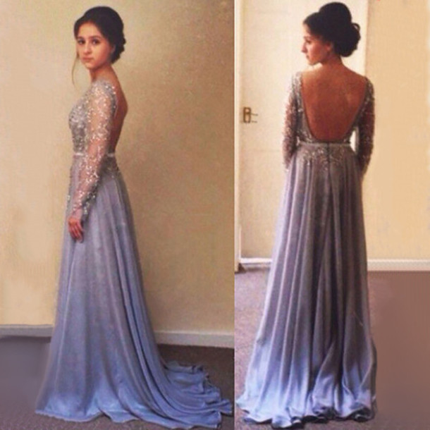 Long Sleeve Backless Beading Long Prom Dress,Evening Dress ,Charming Prom Dresses,BG72