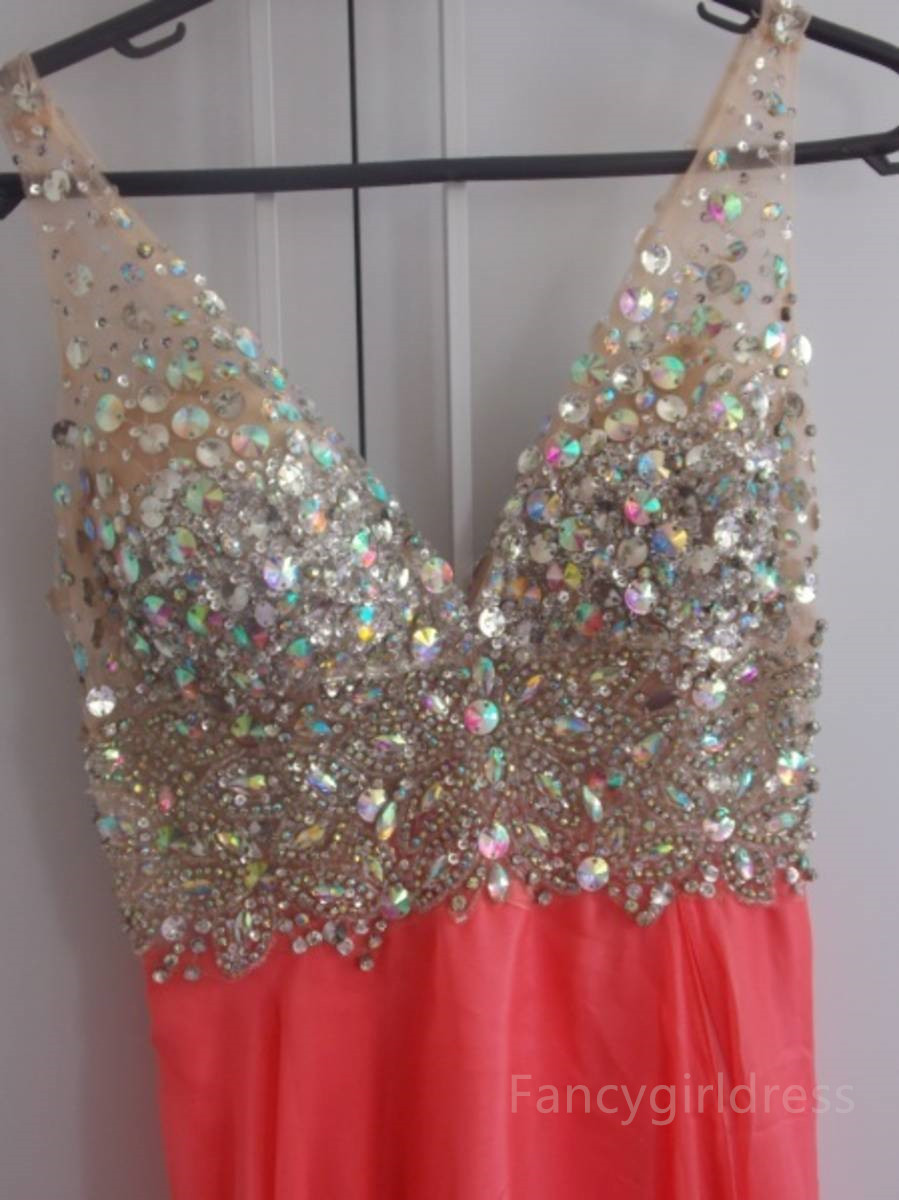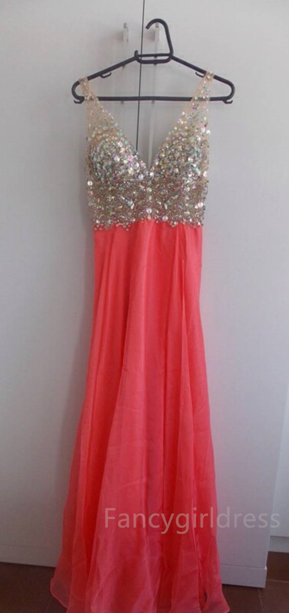 V-Neck Custom Made Beading Long Prom Dress,Evening Dress,Prom Dresses,BG143