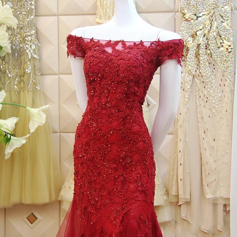 Burgundy Mermaid Lace Prom Dress,Evening Dress,Prom Dresses,BG170